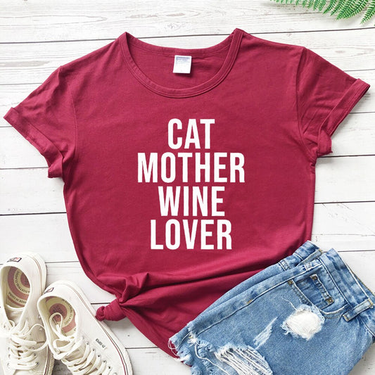 Cat Mother Wine Lover Women's T-shirt in Pink