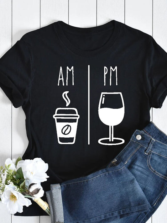AM Coffee PM Red Wine Funny Women's T-shirt